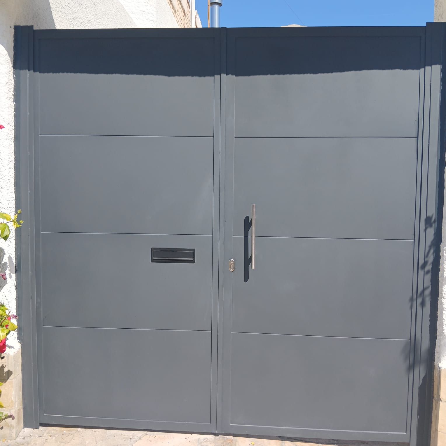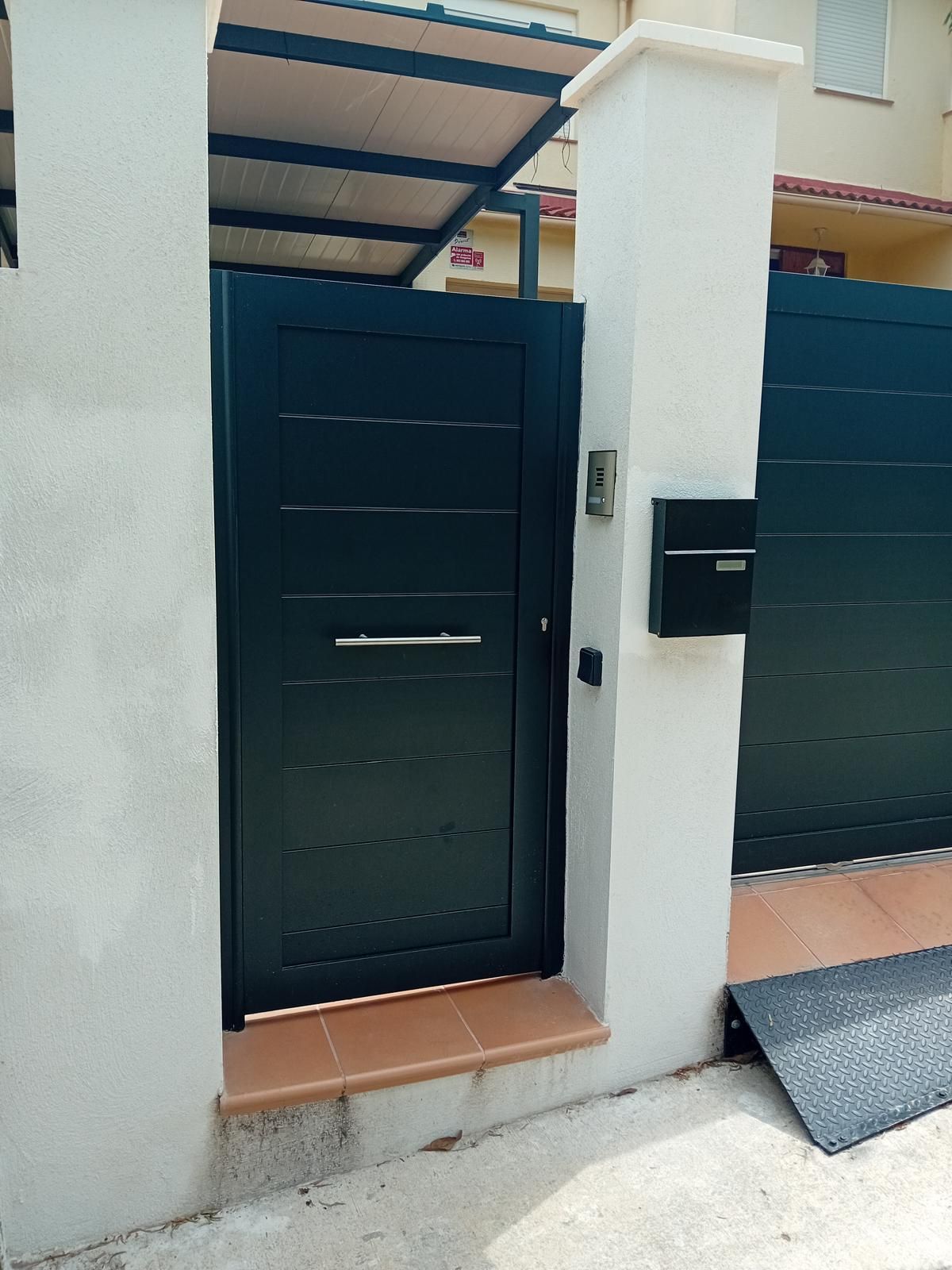 Puerta corredera con puerta peatonal #cerrajero #cerrajeria #tarragona #puertapeatonal #puertacorrederaButton