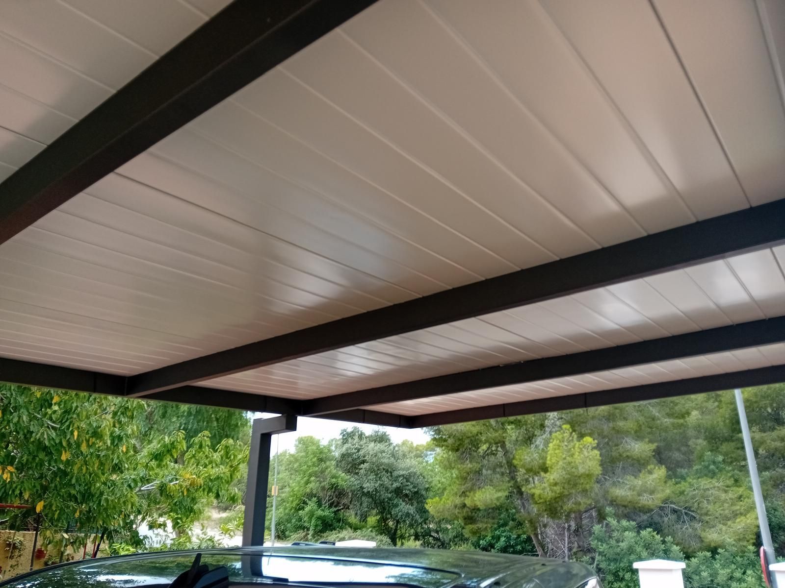 Pérgola de Estructura metálica con techo de panel Sándwich. 🧑🏼🏭🏠🚙 #cerrajero #cerrajeria #tarragona #pergola #pérgolaButton
