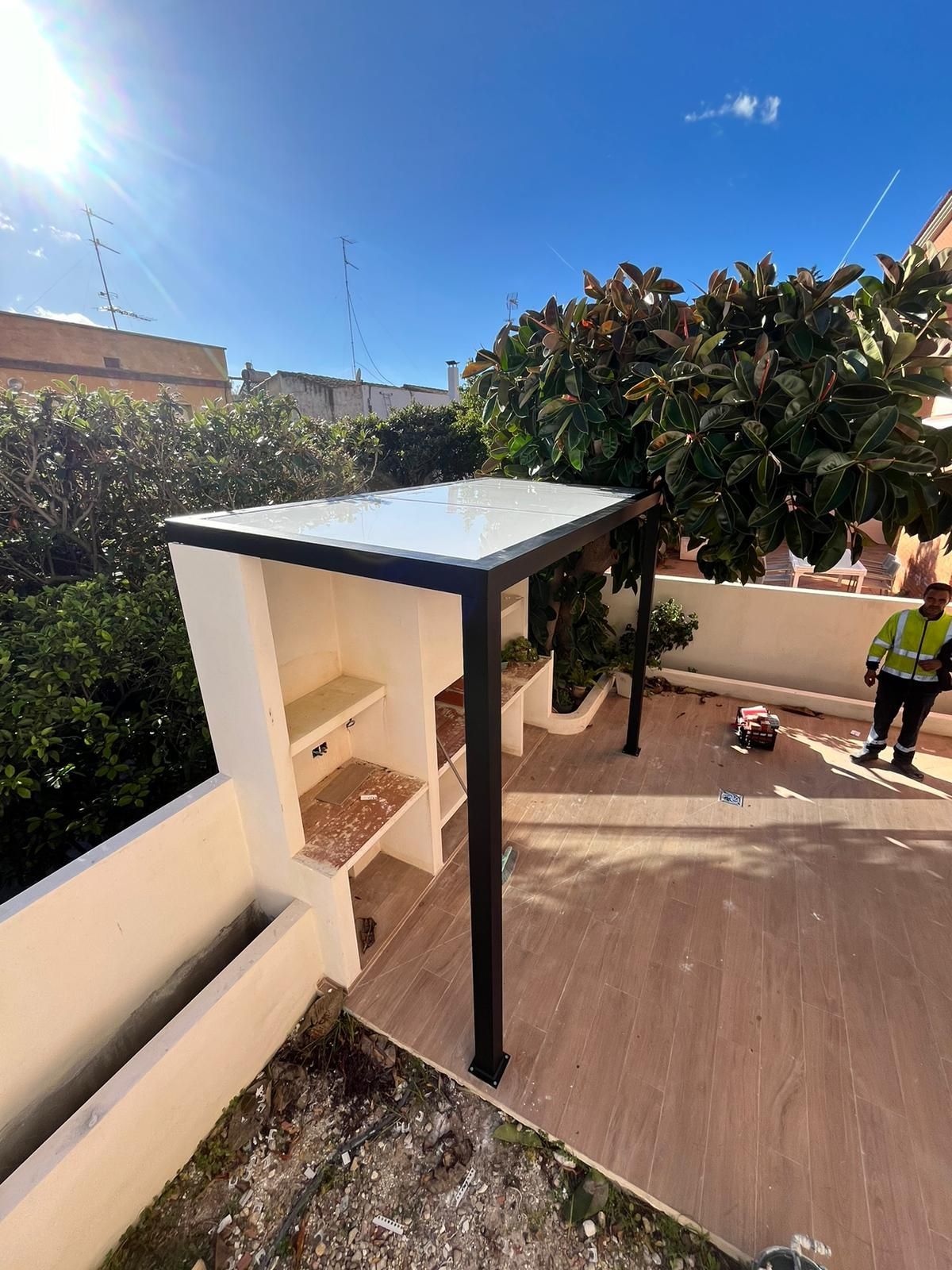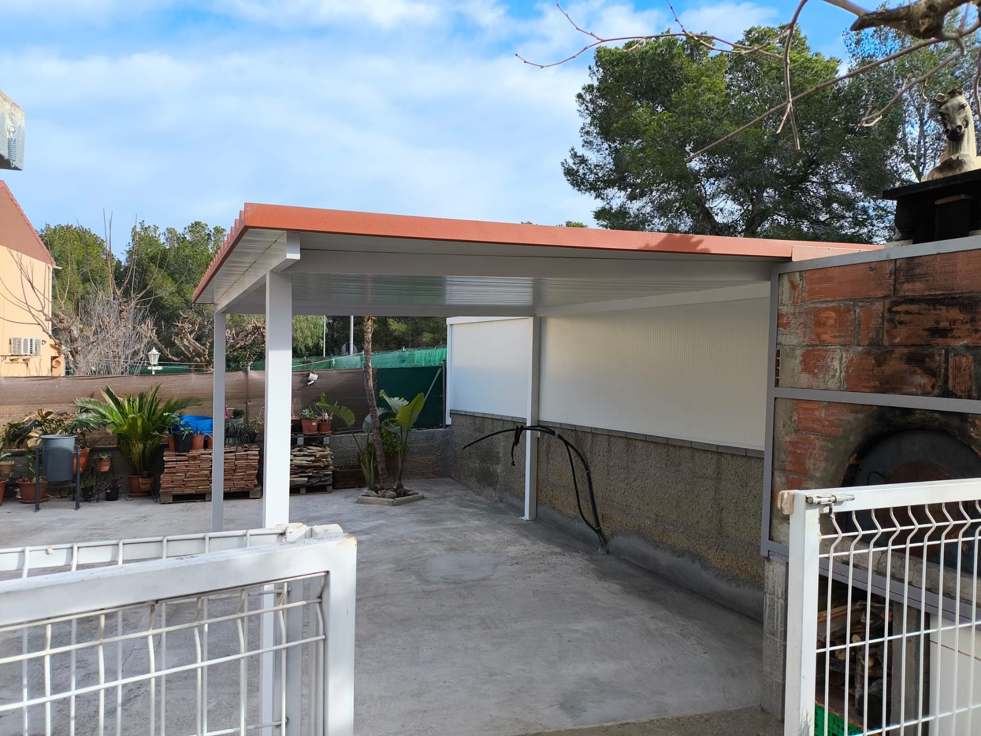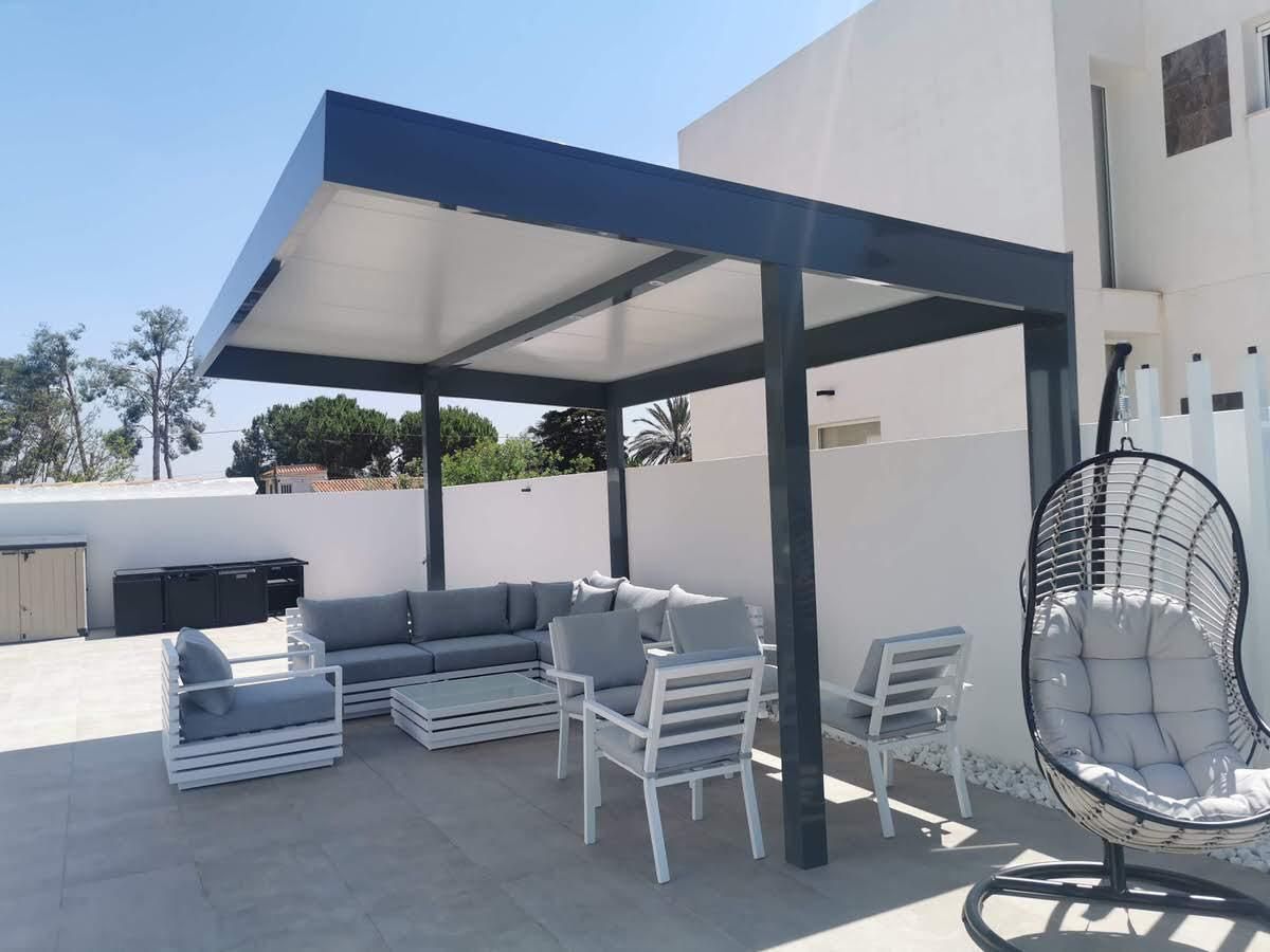 Pérgola de panel de imitación teja. Refugiados del ☀️ o de la lluvia ⛈️ en un día de reunión familiar, amigos o quizá es tu zona de confort?? 🧑🏼🏭 #cerrajero #cerrajeria #pergola #pérgola #tarragonaButton