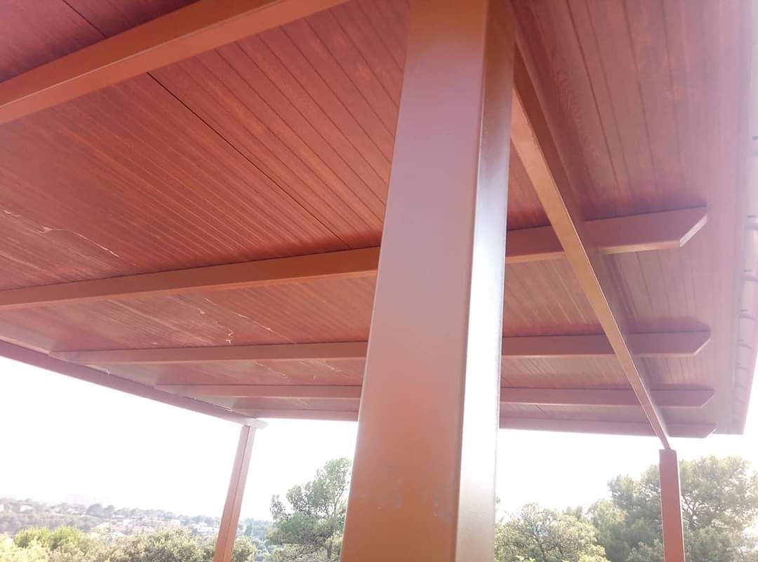 Pérgola de panel Sándwich imitación madera. 🧑🏼🏭 #cerrajero #cerrajeria #soldadura #soldador #pergola #pérgola #tarragonaButton